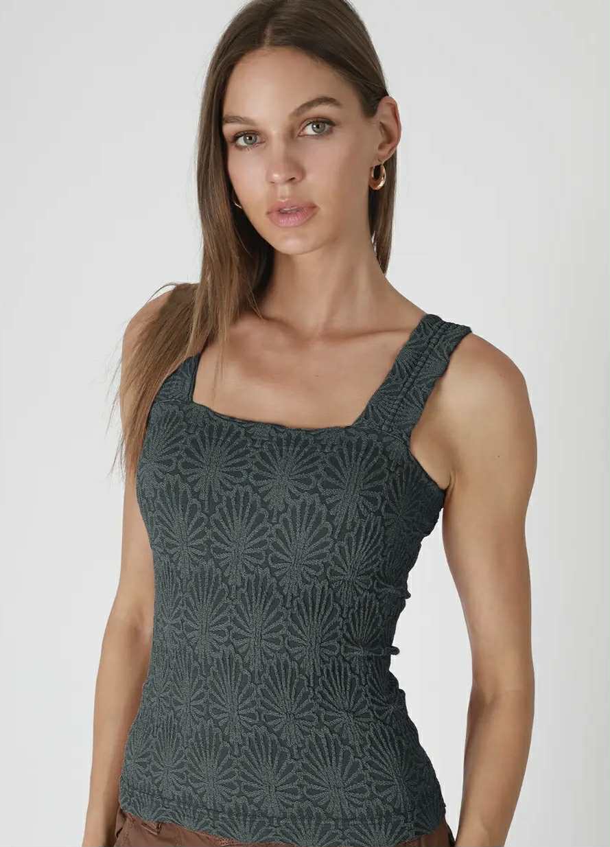 Square top Featuring a floral lace texture.