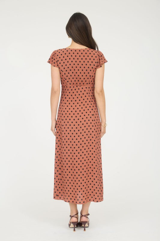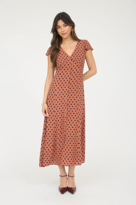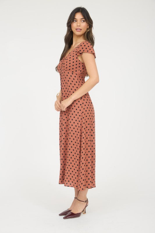 Short ruffle sleeves, button down, with polka dot pattern. Fully lined.